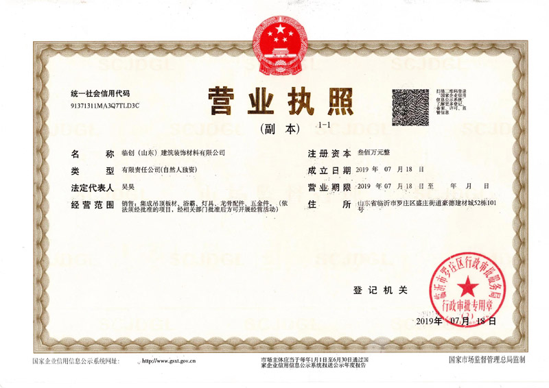 臨創(chuàng)(臨沂)建筑裝飾材料有限公司是一家集成吊頂批發(fā)廠(chǎng)家,集板材、浴霸、燈具、龍骨配件、五金件等集成吊頂材料于一體!主要經(jīng)營(yíng):UV印刷、冰花、覆膜、磨砂、滾涂、抗油污、珠光雙色、鏡面、鐳射、凹凸,生產(chǎn)滾涂拉絲、珠 光,等規(guī)格的集成吊頂鋁扣板半成品片料。應(yīng)用于廚房空間、衛(wèi)浴空間、餐廳空間、客廳空間、臥室空間、書(shū)房空間、過(guò)道空間、陽(yáng)臺(tái)空間及工作辦公空間;規(guī)格齊全、花色多樣!