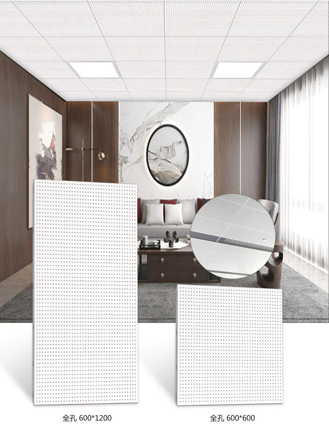 全空集成吊頂又稱對角孔集成吊頂或鋁合金穿孔吸音板,具有集成吊頂鋁扣板的屬性特點,突出的是吸聲降噪的功能特點。使用在建筑工程中造型美觀、立體感強,常被應(yīng)用于賓館、飯店、影院、播音室等中高級建筑工程以及廠房、機房、民防工程吊頂,起到降噪、改善音質(zhì)的措施。